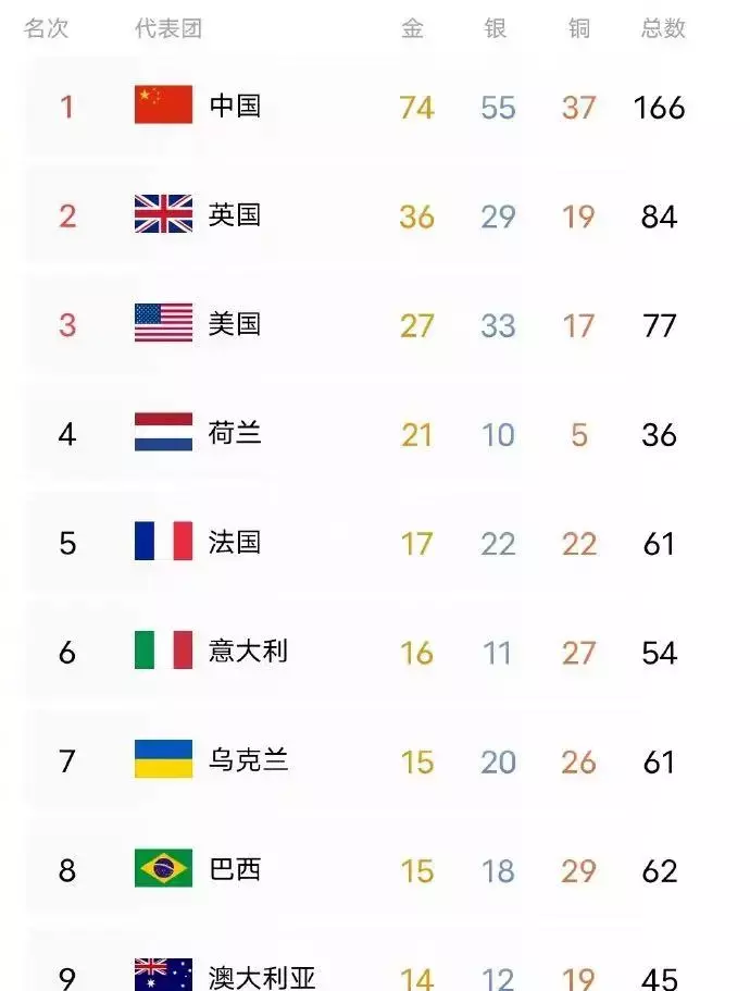 巴黎残奥会开赛后第八日,中国军团单日成绩12枚金牌,奖牌总和达166枚,稳居奖牌榜第一