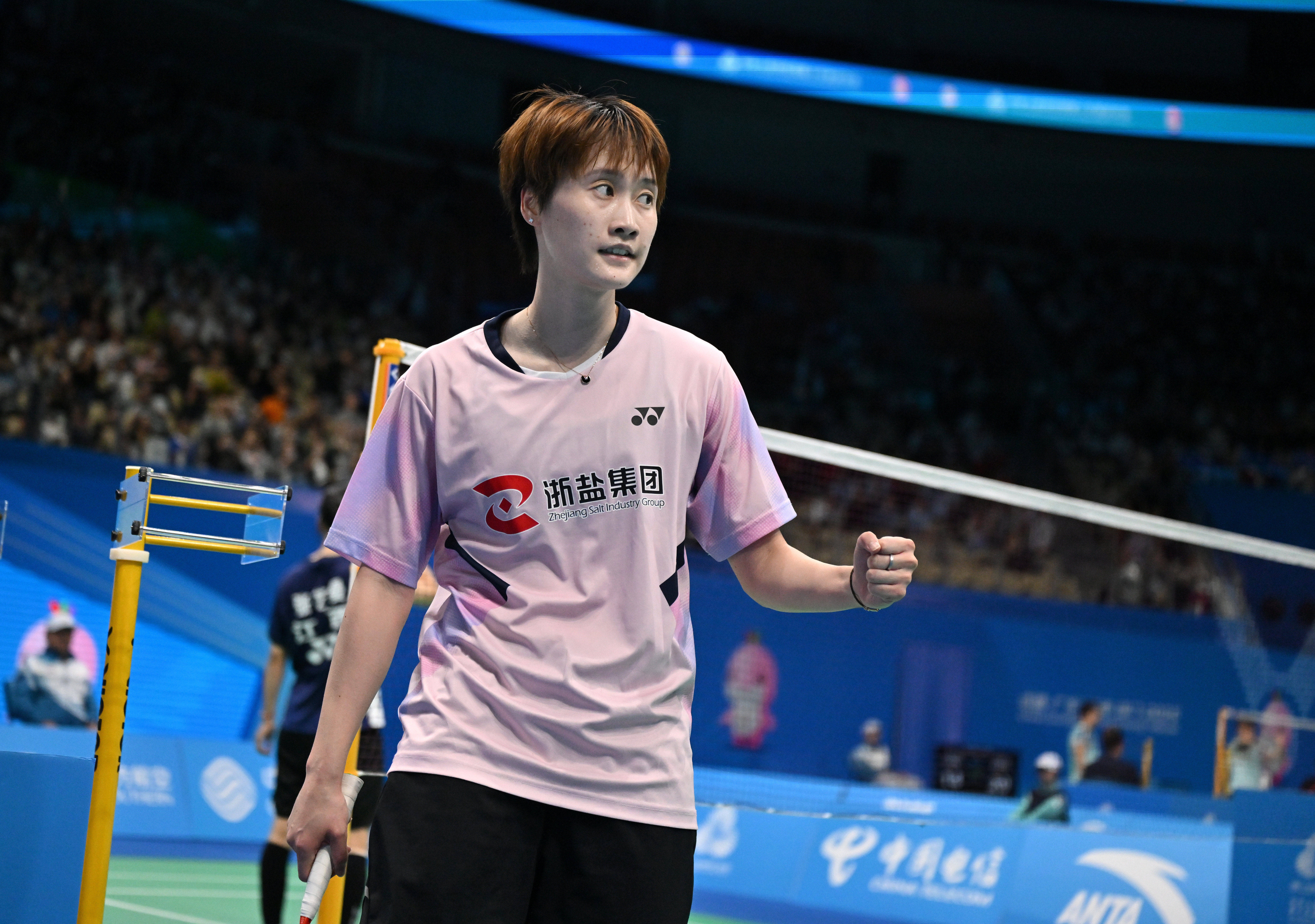 陈雨菲将在半决赛对阵福建队的韩悦,后者以21:11、22:20淘汰了人选手邬洛愉。另外两张四强门票被湖北队王祉怡和江苏队高昉洁拿下。